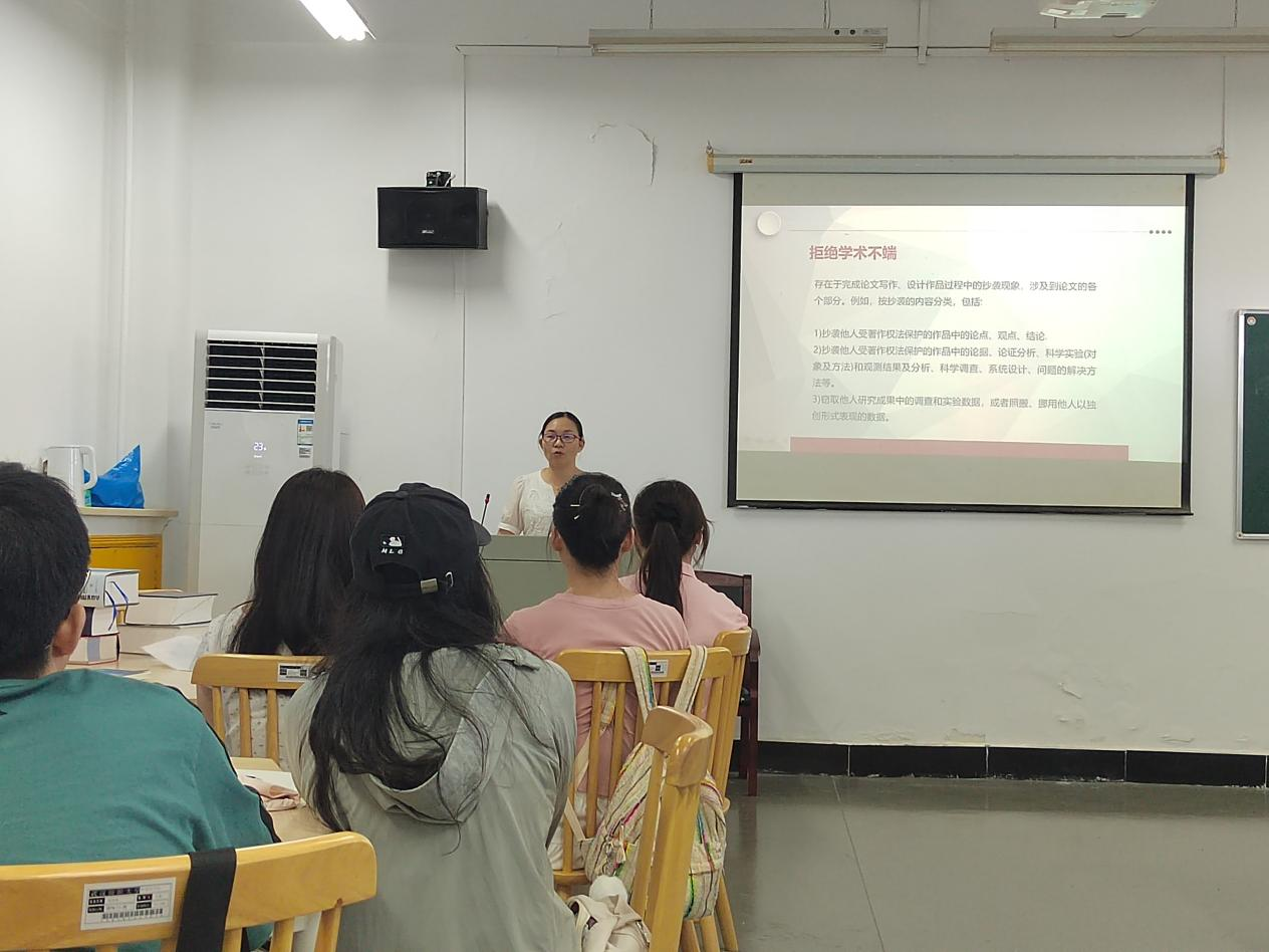 王春介绍了学籍与学分管理的相关规定,告知大家如何有效规划自己的课程。她强调,各位研究生应对自己的青春负责,珍惜这三年的学习时间,不负韶华,认真对待每一个学分,踊跃参与各项学术会议、大赛和项目,积极参加班会和社会实践。
