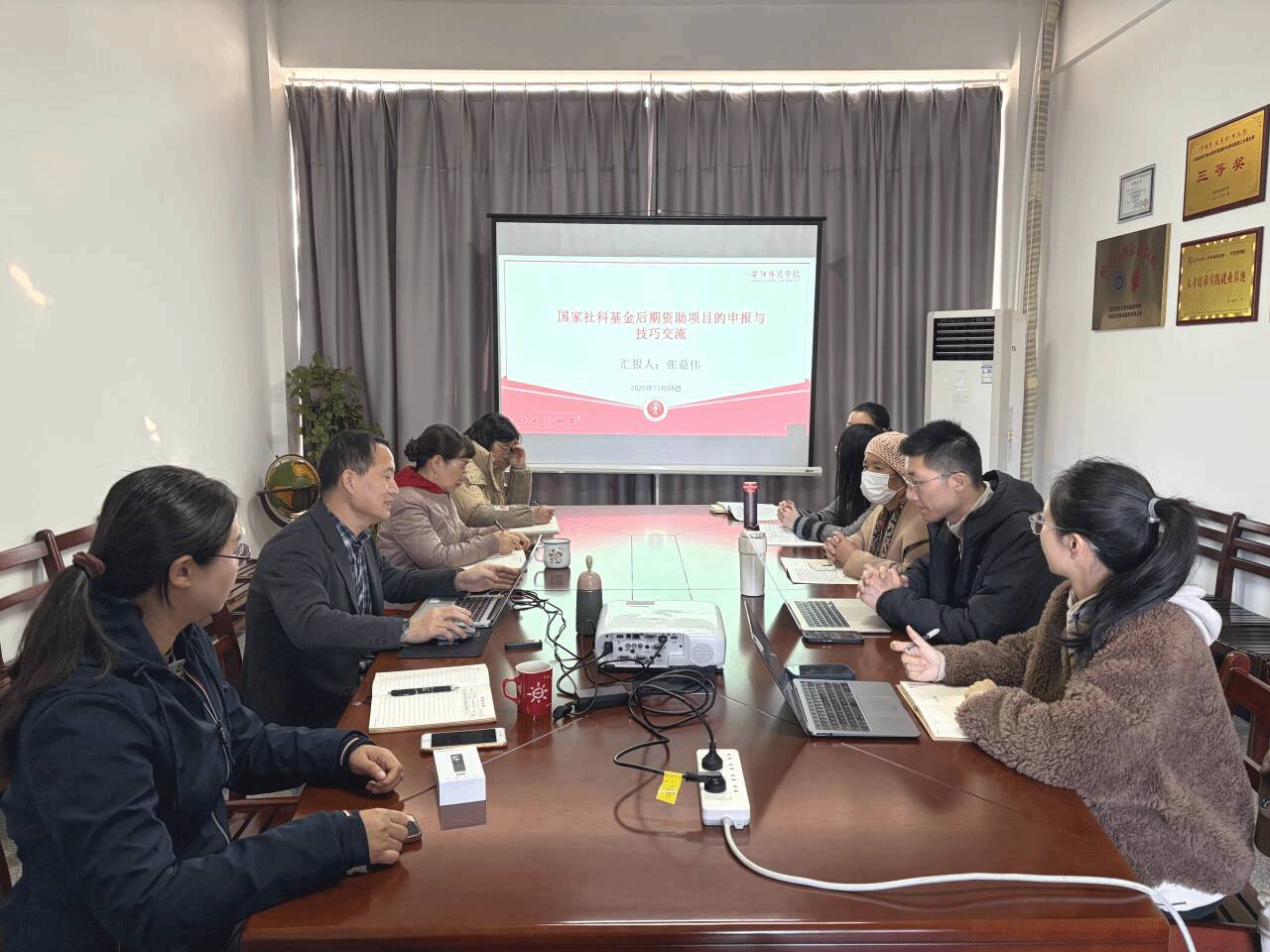 11月28日上午,安阳师范学院张益伟博士应必赢76net线路邀请在崇文楼04-313作“国家社科基金后期资助项目的申报与技巧交流”的专题讲座。讲座由院长谭燕保教授主持,学院新进博士和在读博士参加并聆听了本次讲座。