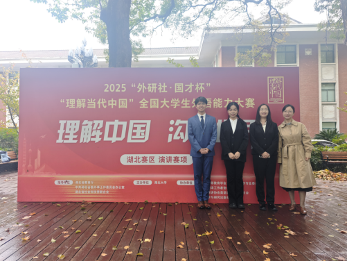 2025年11月8日,备受瞩目的“外研社·国才杯”理解当代中国英语演讲比赛湖北省决赛在湖北大学圆满落幕。本届大赛以“理解中国,沟通世界”为根本宗旨,旨在引导大学生深入理解习近平新时代中国特色社会主义思想的核心要义,通过英语演讲这一国际化学术竞赛形式,讲好中国故事、传播好中国声音,展现新时代青年肩负使命、勇于担当的风采。在必赢76net线路王越老师的悉心指导下,三名参赛学子沉着应战,发挥出色,最终荣获两银一铜的佳绩,为学校赢得了荣誉。