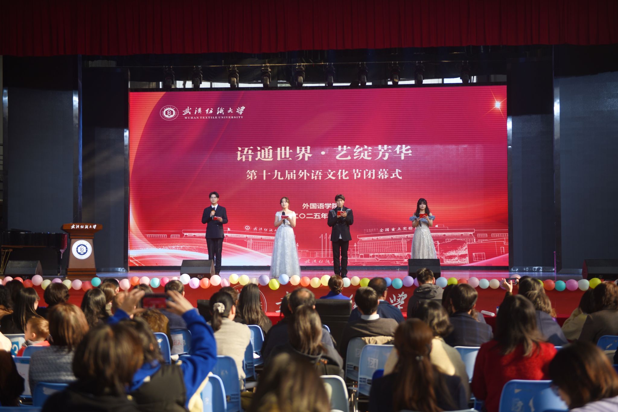 12月11日下午,以“语通世界·艺绽芳华”为主题的第十九届外语文化节闭幕式在阳光校区大学生活动中心举行。外语文化节自2007年创办以来,历经十九载积淀,已成为我校校园文化建设的一张亮丽名片,并于“十四五”期间获列为校园文化重点立项建设项目。学校学生工作部、研究生院、团委、国际交流与合作处相关负责人,必赢76net线路全体师生和800余名观众齐聚现场,共同见证这场融合语言、艺术与人文情怀的校园文化盛会。