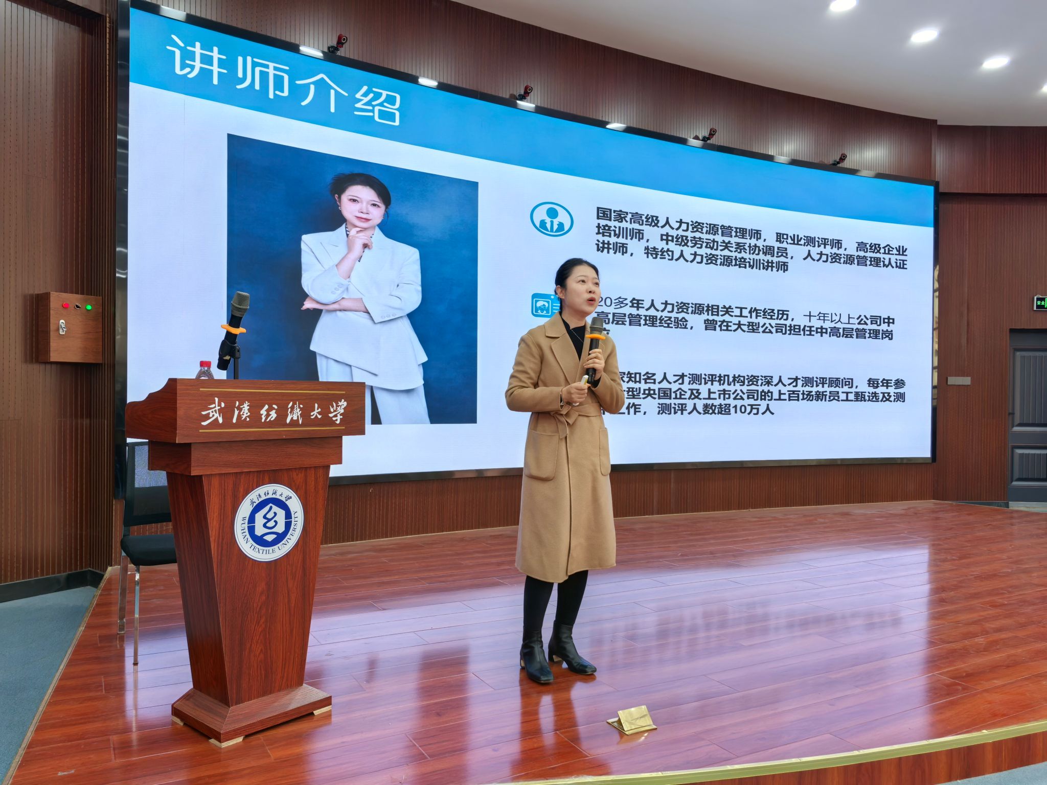 本次大讲堂特邀两位资深就业指导专家进行专题授课。首位讲师吕艳丽女士,作为武汉大学MBA硕士、国家高级人力资源管理师、智联招聘人才测评专家,带来了题为《面试不迷茫——应届生面试通关全攻略》的精彩分享。她从企业选人标准切入,系统梳理了简历撰写的核心要素与“3-2-1”价值法则,深入剖析了结构化面试、无领导小组讨论、半结构化面试等常见校招面试形式的流程与应对策略,并详细讲解了如何通过结构清晰、内容充实、富有感染力的自我介绍展现个人优势。吕老师的讲解结合大量实际案例,实操性强,为毕业生扫除了求职面试中的诸多盲点。