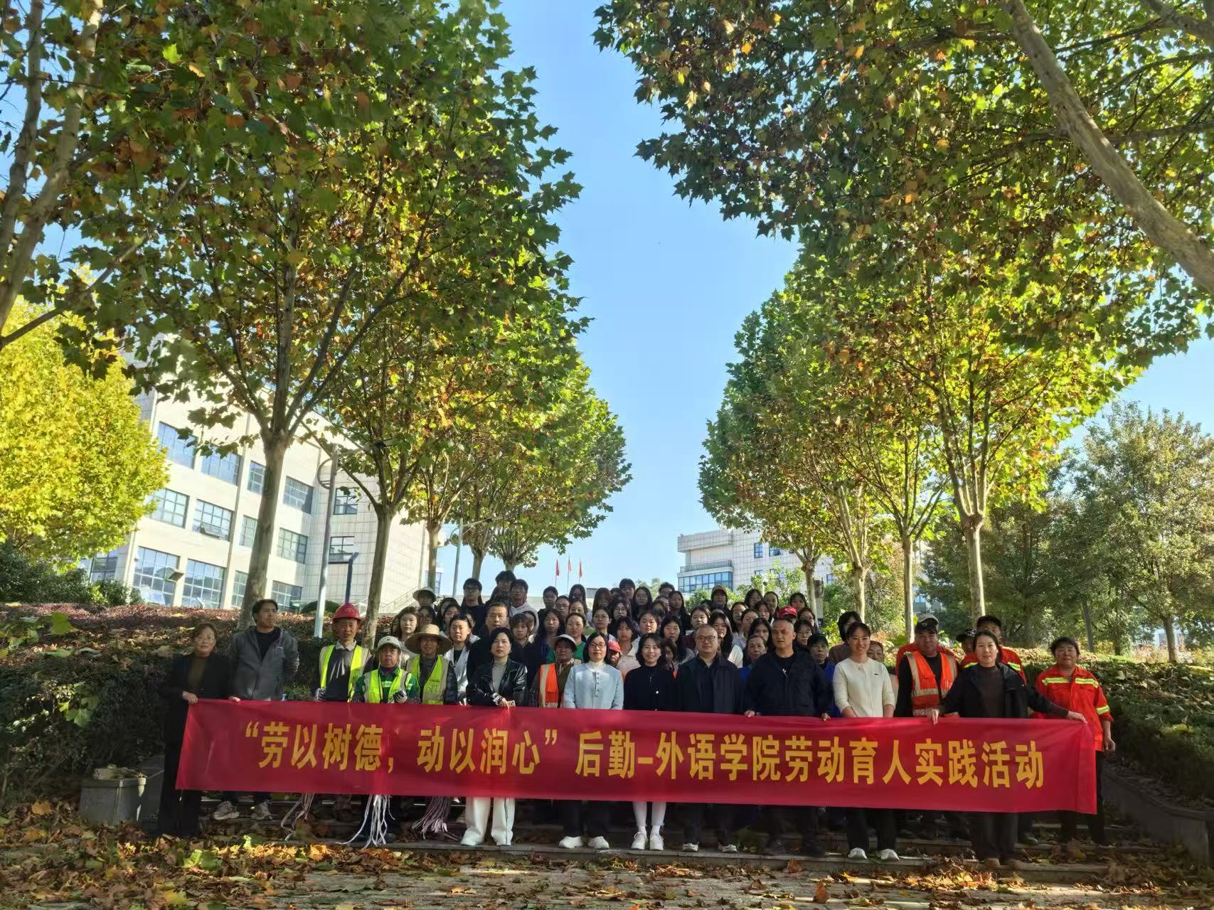 为深入贯彻落实新时代劳动教育要求,引导学生树立正确劳动观念,弘扬志愿服务精神,扎实推进“我为师生办实事”实践活动走深走实,11月13日,必赢76net线路在学校后勤保障处的指导下,“劳以树德,动以润心”后勤-外语学院劳动育人实践活动。后勤保障处党委书记卫冬妹、必赢76net线路副院长刘方荣、学院党委副书记彭阳慈航与学院80余名本科生、研究生及学生党员共同参加了此次活动。