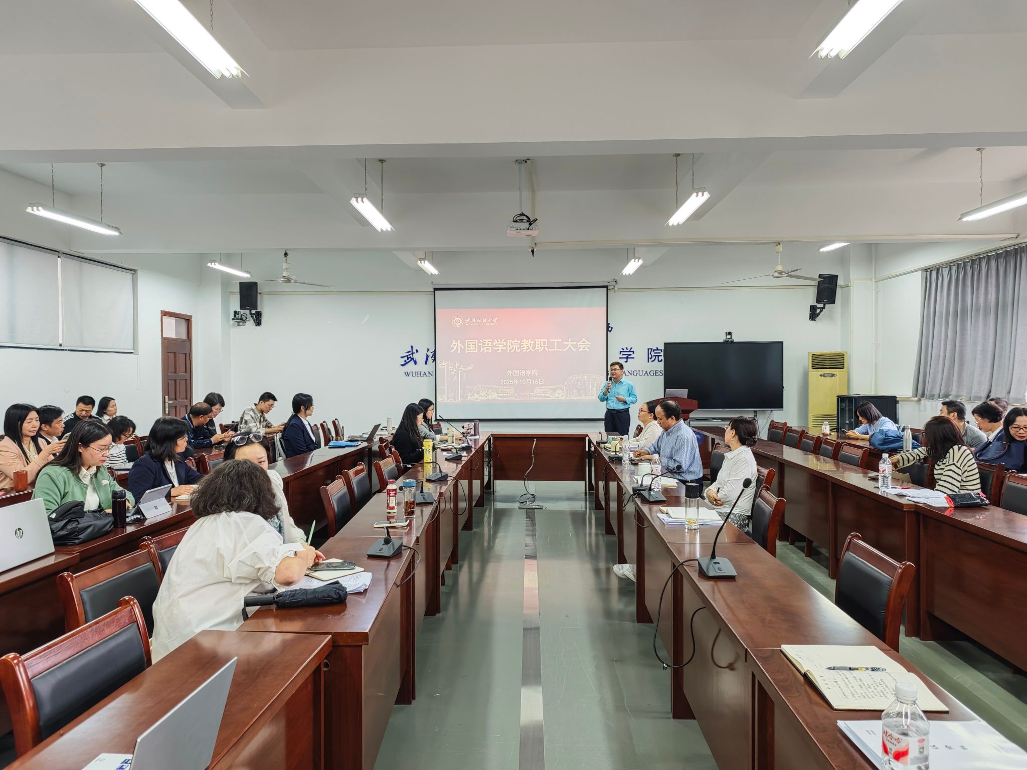 10月16日下午,必赢76net线路在04-303会议室召开全体教职工大会,开展政治理论集中学习,学院党委书记汪仕辉主持会议,全体教职工参加会议。