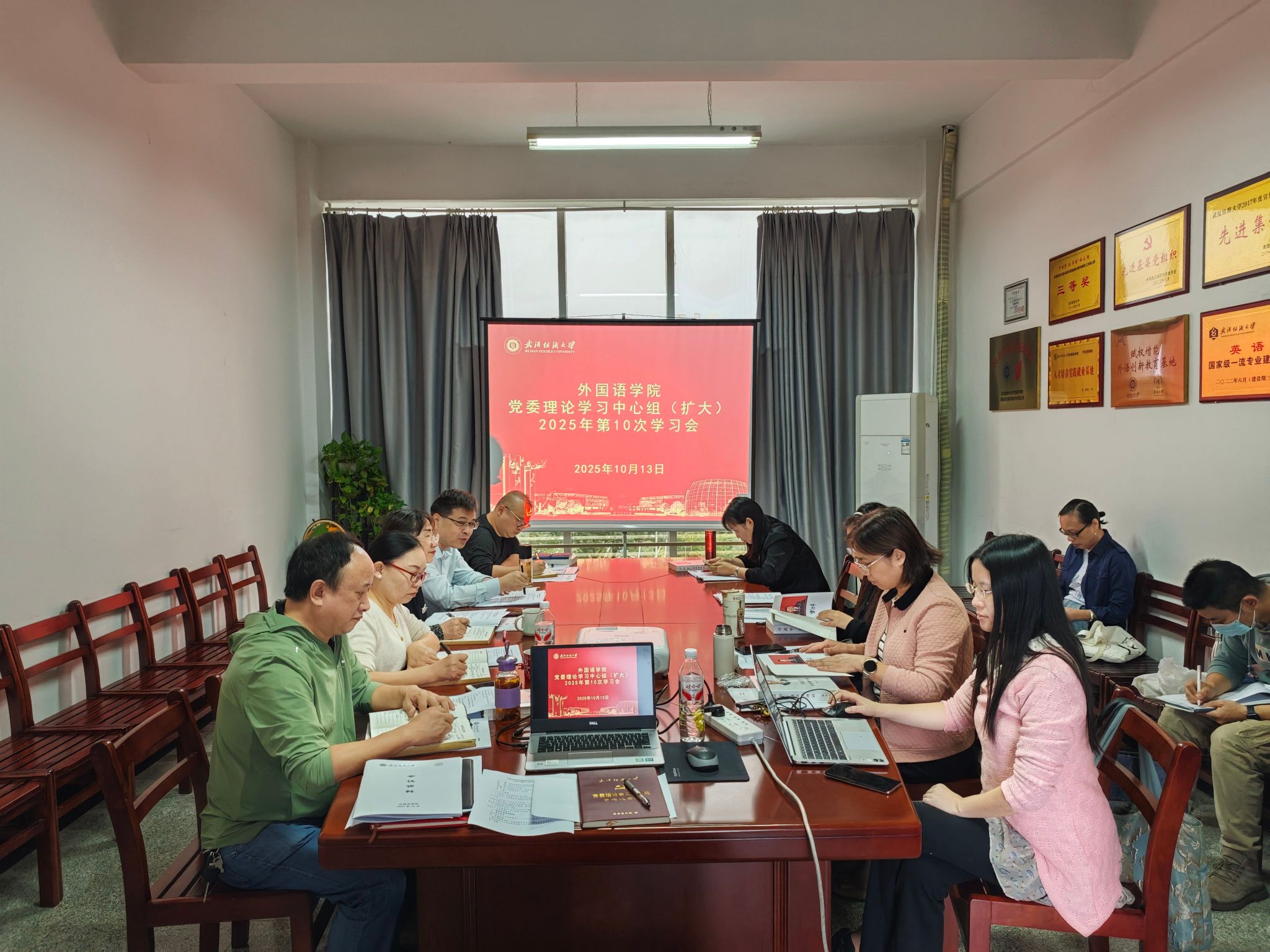 10月13日上午,必赢76net线路党委理论学习中心组(扩大)学习会在04-313会议室召开,本次学习会的主题是学深悟透党的创新理论最新成果 引领事业高质量发展,学院党委书记汪仕辉主持会议,院长谭燕保、副院长罗绮伦、刘方荣、副书记彭阳慈航、党委委员、党支部书记、系(部)主任参加会议。
