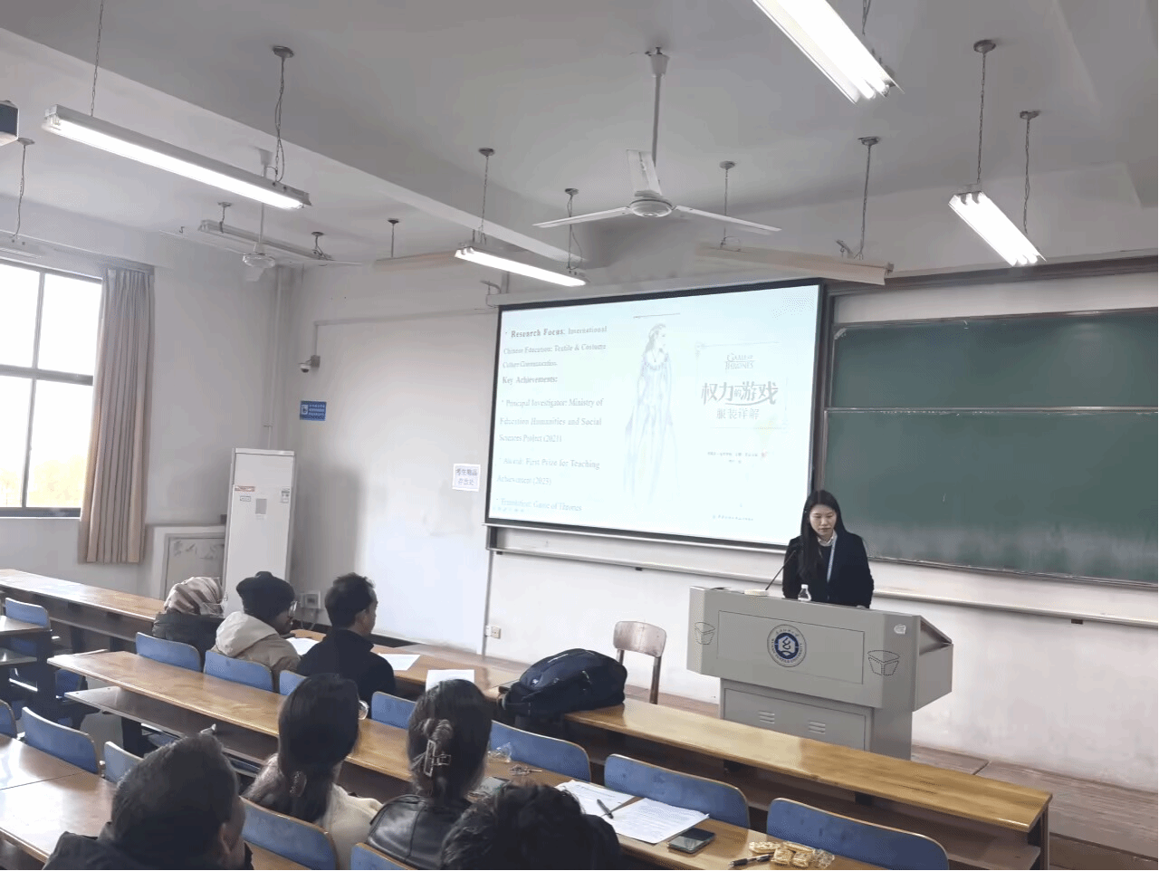 为进一步提升我校来华留学生的专业汉语水平,增进其对中国纺织服饰文化的理解,近日,必赢76net线路周丹教授为纺织工程专业的留学生们带来了一场题为《解码语言的经纬》(Decoding the Fabric of Language)的精彩讲座。讲座以“纺织汉语”为切入点,通过生动的双语教学与沉浸式互动,带领留学生们开启了一段探寻中华文明“经纬”的文化之旅。