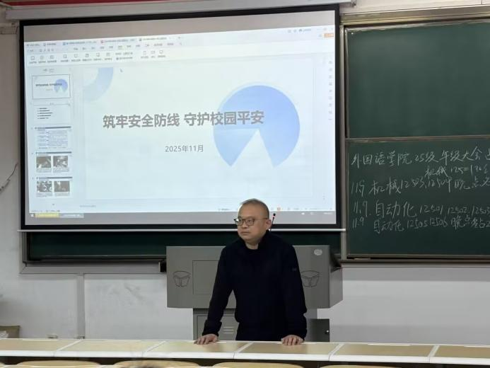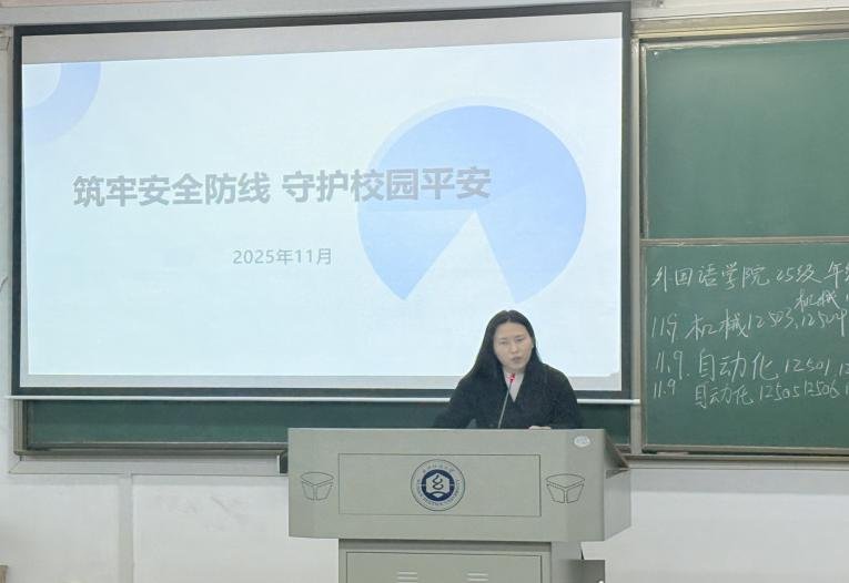 为扎实推进校园安全体系建设,精准引导新生做好学业规划,11月9日必赢76net线路在阳光校区举办安全教育活动。本次大会以“筑牢安全防线,守护校园平安”为核心主题,学院党委副书记彭阳慈航、2025级辅导员石亚楠及2025级全体学生参会。