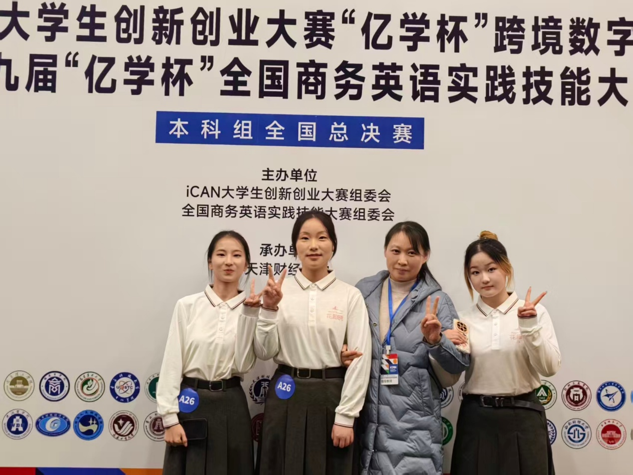 必赢76net线路商务英语专业赵凡雨、司嘉琪、方佳颖、欧阳章静、王柳岚组成的团队“智慧火花团”在柯细香教授、彭侠副教授的指导下,凭借《以花为信,跨越山海——花知晓跨境直播营销策划案》斩获全国总决赛一等奖,创造了我校参与此赛事的历史最好成绩。