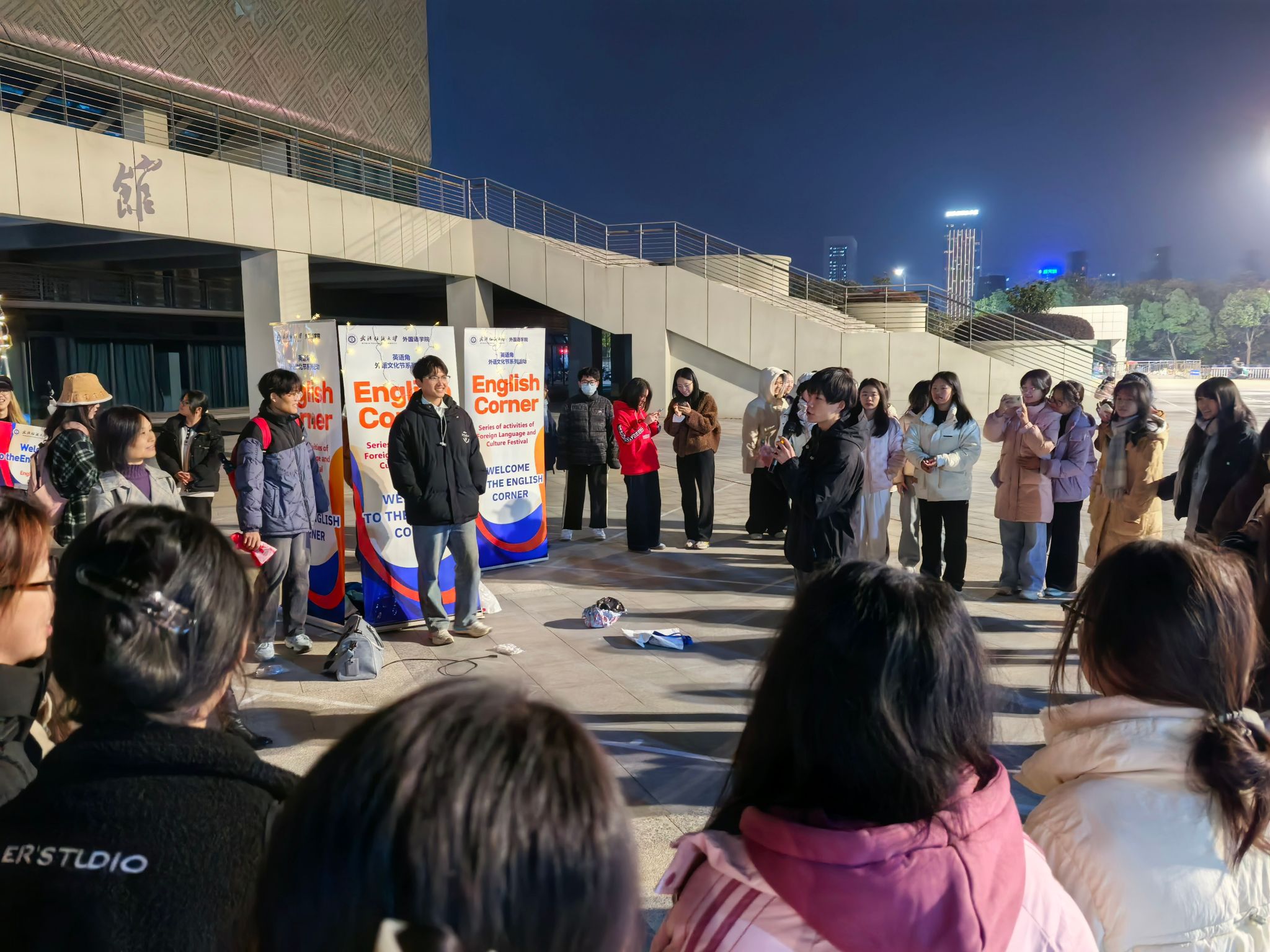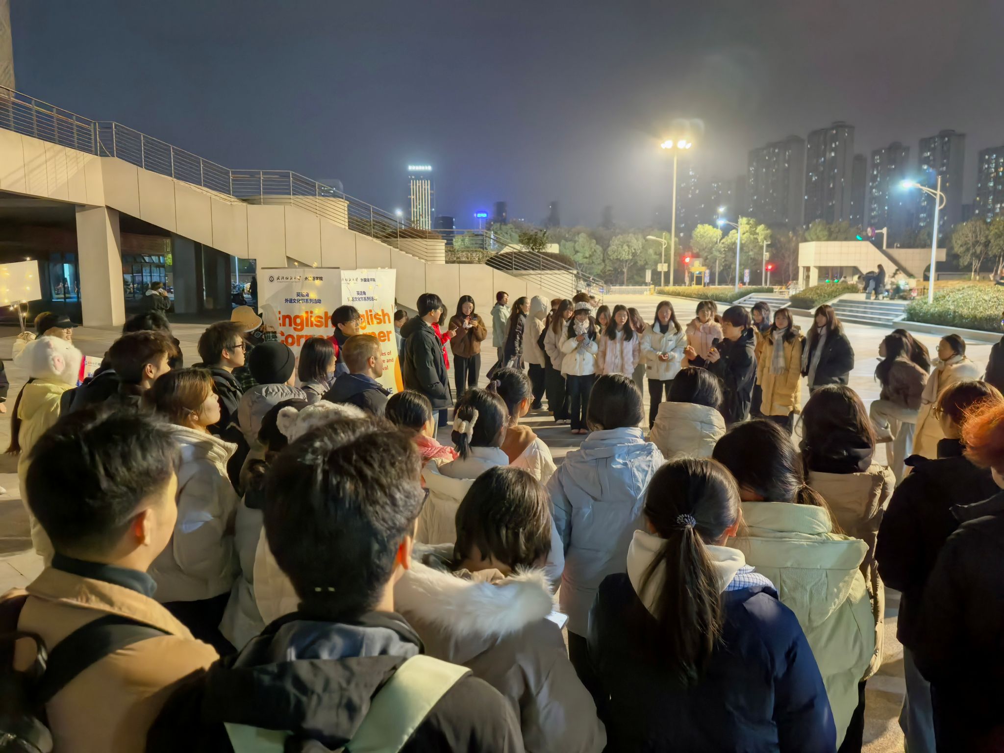 12月4日,必赢76net线路在阳光校区与南湖校区成功同步举办校园英语角活动。本次活动吸引了两个校区共计约400名师生踊跃参与,学院领导班子成员、专业教师及外籍教师共同到场,与同学们进行面对面交流,活动现场气氛热烈,学术与文化交流氛围浓厚。